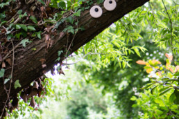 Installation ludique invitant les promeneurs à observer la nature et à faire un pas de côté.